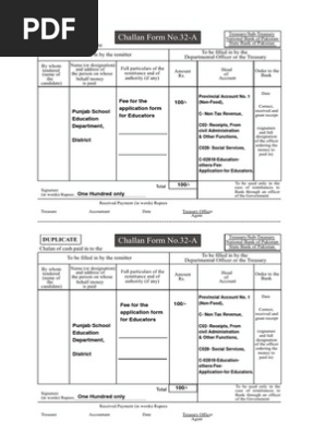 Challan Form No 32 A Rupees Only Cash Payments - Then take your e stamping paper from the bank of punjab branch.