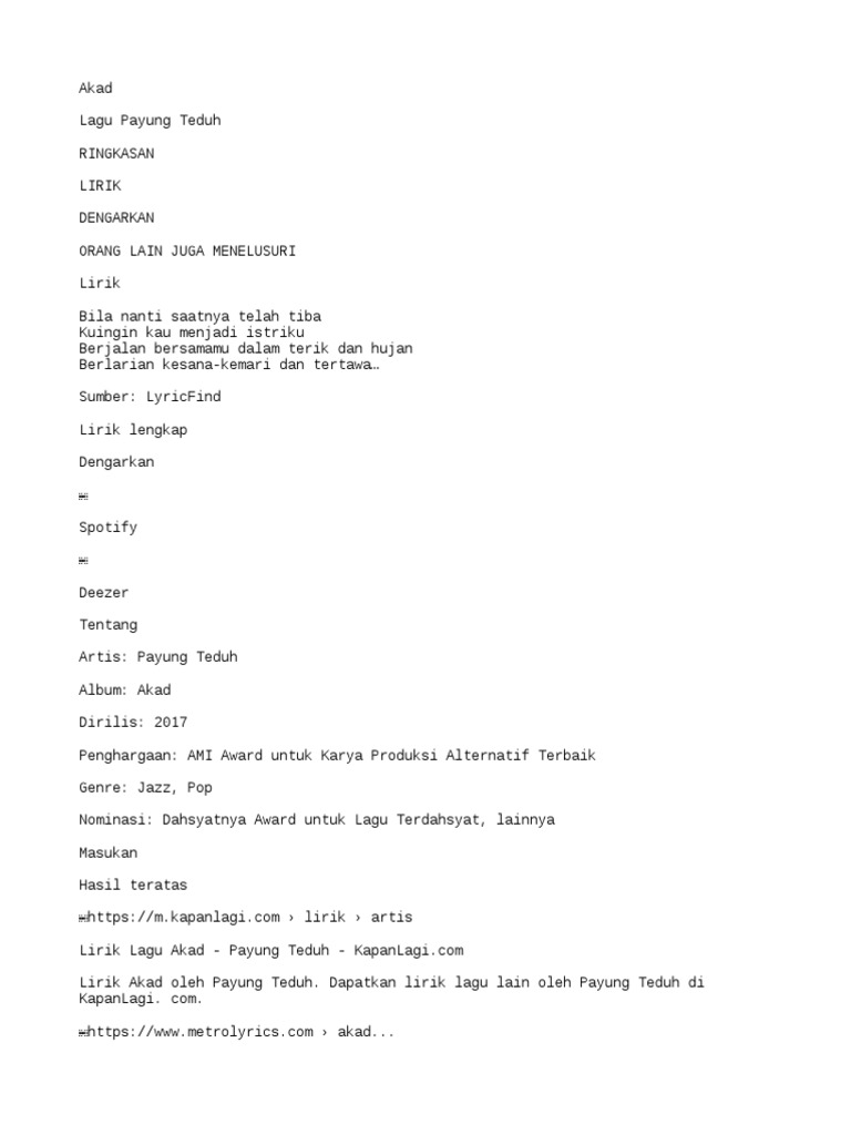 Payung Teduh Akad Chordtela - Music lyrics 07 november 2020.