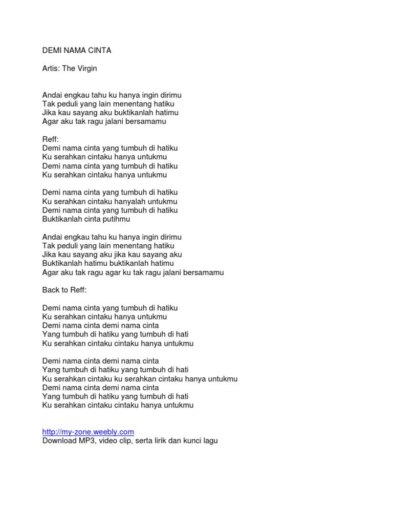 Lirik Lagu Demi Nama Cinta : Dewa 19 atas nama cinta: Lirik Lagu Demi Nama Cinta / Are you see now top 10 download lagu demi nama cinta results on the web.