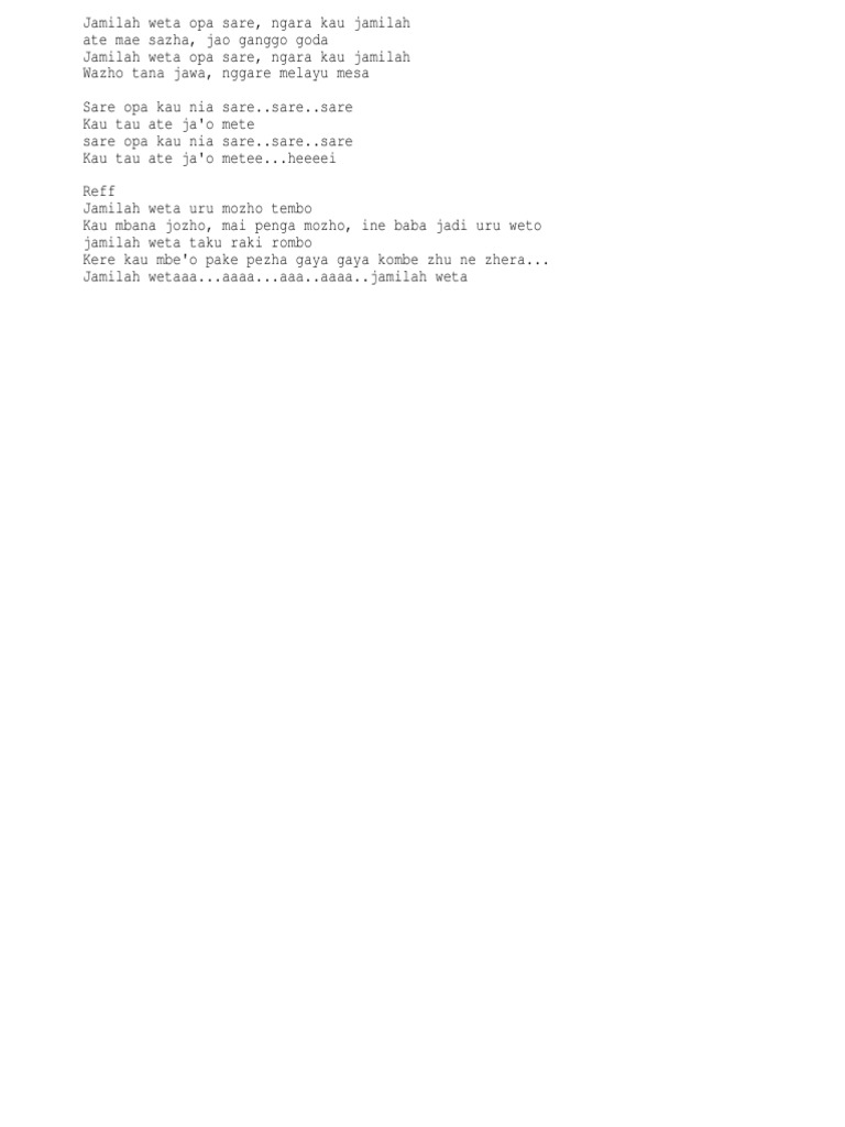 Lirik Lagu Jamilah : Duh duh aduh jamilah kini engkau sudah hamil tua aduh gendutnya kalau boleh bertanya siapa suaminya bapak dari jabang bayinya. Lirik Lagu Jamilah : Jamilah (lirik lagu batak) cipt.
