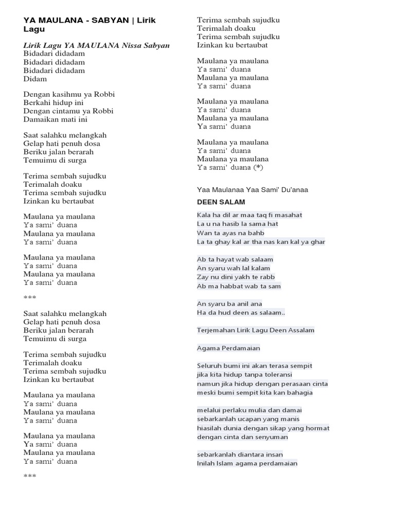 Lirik Sholawat Maulana Ya Maulana Ya Sami Duana Birohmatika Ya Robbi - 4:14 focus media jombang 347 268 prosmotrov. Lirik Sholawat Maulana Ya Maulana Ya Sami Duana Birohmatika Ya Robbi : Maulana ya maulana ya sami' du'ana maulana ya maulana ya sami' du'ana.