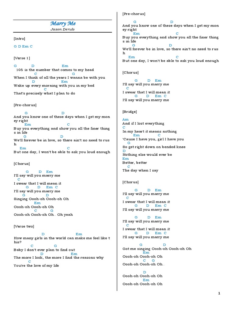 Marry Me Song Structure Musical Forms - Marry me lyrics music sheet with notes.