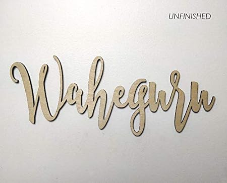 Sikh Punjabi Religious Wooden Text Cut Out ਸਤ ਨ ਮ ਵ ਹ ਗ ਰ Satnam Waheguru With ੴ Ik Onkar Symbol - This mantra means 'truth is my identity, great is the guru who brings us from darkness to light.'