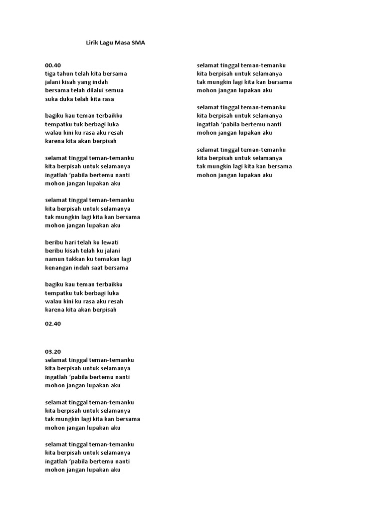 Lirik Lagu Masa Sma Docx - Ruang musik 69 11 may 2020.