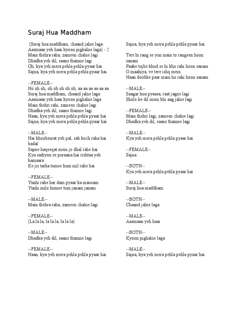 Suraj Hua Maddham Lirik : Kabhi khushi kabhie gham (2001) director: Suraj Hua Maddham Lirik : Hai khoobsurat yeh pal sab kuch.