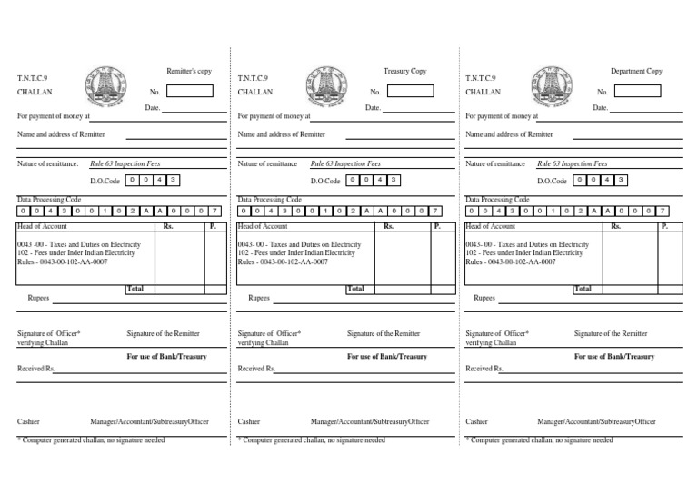 Treasury Challan Format Pdf : Challan of cash paid into the.